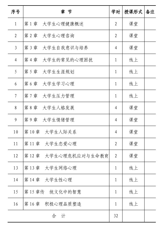 《大学生心理健康教育》教学大纲(2024版)