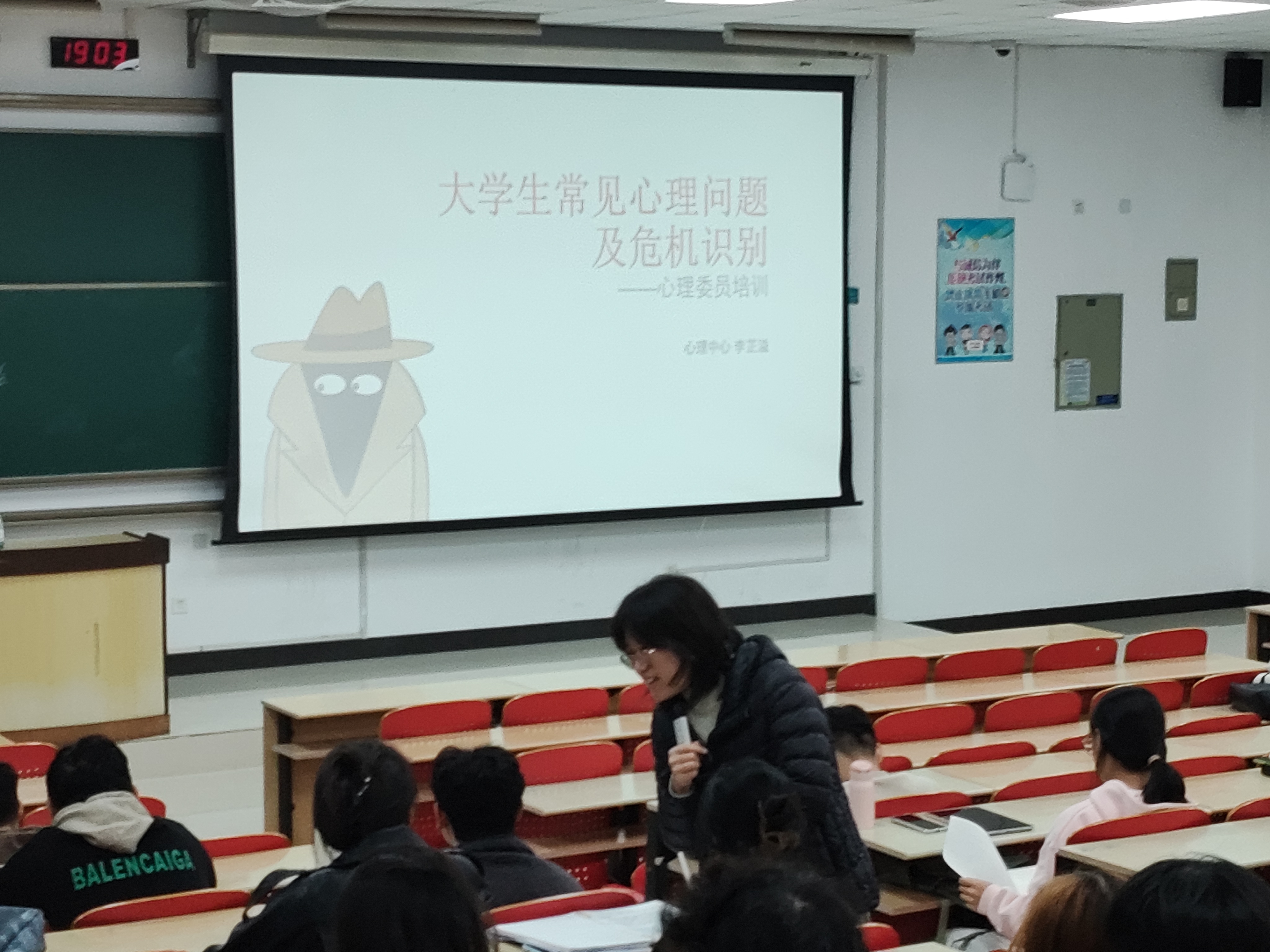 张金健老师和李芷溢老师分别为同学们介绍了大学生心理危机的识别及心理委员的应对方法,明确了心理委员以上报线索为主,协助辅导员老师做好有困难同学的心理帮扶工作。她们还就心理委员如何开展日常工作作了专门指导。