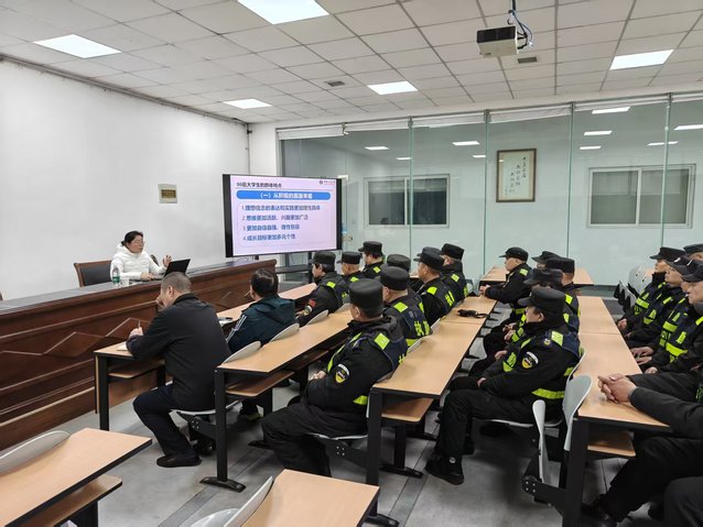 王蕾老师结合校园安保工作,指出当前大学生因学业、就业、人际关系等多重压力,心理问题呈现复杂化、隐蔽化特征,强调安保人员掌握科学的危机识别方法、妥善的应对技巧、高效的沟通能力,是守护学生生命安全、防范校园安全隐患的底线要求,也是每一位安保人员的必备岗位技能。培训中,王蕾老师通过典型校园案例,剖析心理危机学生常见的行为特征、情绪表现和言语信号,帮助参训安保人员建立察言观色、预判风险、稳妥介入的初步识别能力。